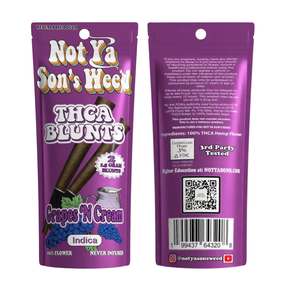 Rolled thick and ready to burn, these blunts are packed with pure THCa flower only (never infused) for a slow, flavorful smoke. Each resealable pouch includes two blunts, each weighing 1.5 grams, for a total of 3 grams of premium flower.
