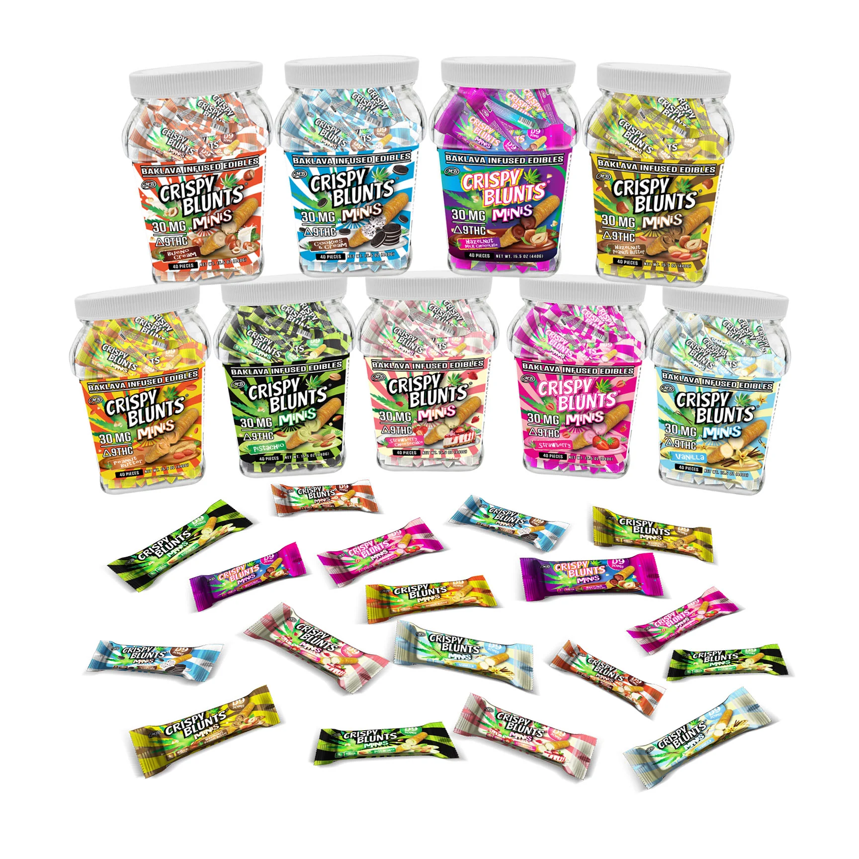 A sweet twist on potency our Mini Crispy Blunts combine dessert vibes with a powerful kick. Each mini baklava-inspired bar is infused with 30MG of Delta-9 THC, offering a rich, nutty-sweet crunch that hits just as good as it tastes.