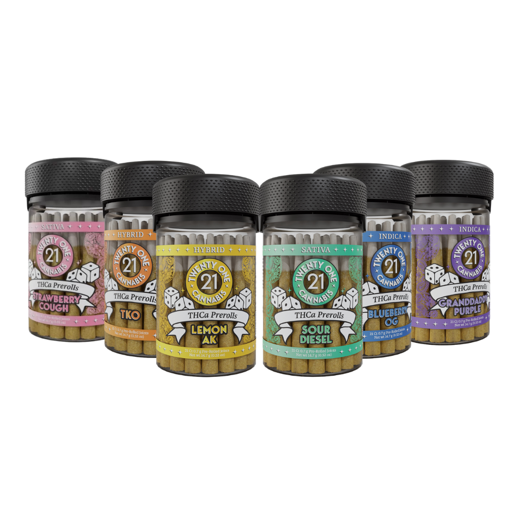 Available in multiple strains, these pre-rolls are tailored for every vibe—whether you’re chasing uplifting energy, balanced focus, or laid-back relaxation. Conveniently rolled and ready to spark, 21 Cannabis Pre-Rolls make it easy to enjoy the smooth, flavorful experience of THCa flower wherever you go.